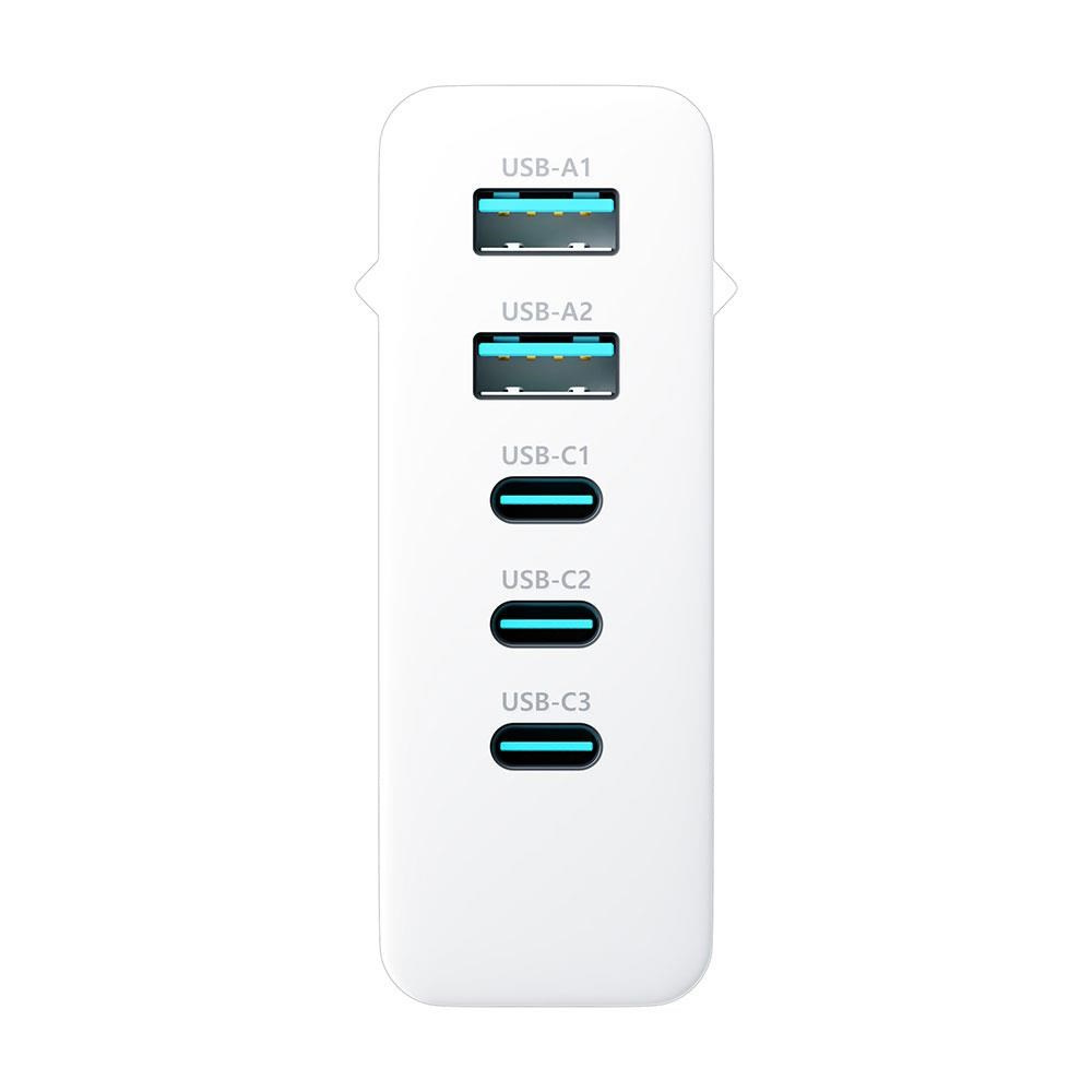 3mk síťová nabíječka - Hyper Charger 140W, GaN 3x USB-C (PD) / 2x USB, bílá