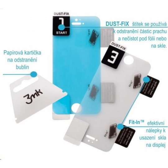 - Sada obsahuje: FlexibleGlass, kartičku na rozetření bublin, polohovací samolepky Fit-In™ a samolepky Dust-Fix™, čistící a suchý hadřík