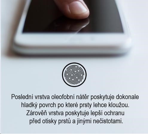 Otisky prstů nejsou zrovna ozdobou displeje. Navíc je často obtížné je odstranit bez mastných pruhů. Použili jsme oleofobní vrstvu v HardGlass Max™, která nejen poskytuje odolnost proti mastným stopám a usnadňuje čištění, ale také snižuje opotřebení na minimum! Tření je též redukováno na minimum, díky čemuž je každý dotek povrchu displeje velmi příjemný. Jeho zvětšená odolnost proti mastným stopám a skvrnám usnadňuje udržování čistoty skla.