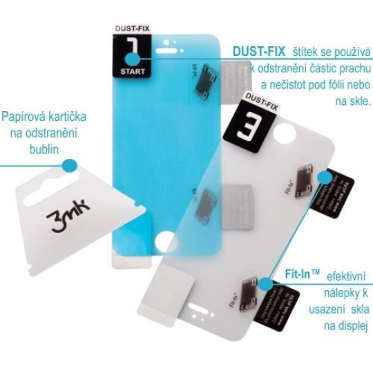 - Použité technologie - 2,5D zaoblené hrany, oleofobní povlak, lepidlo Inviscid-Sil™, vrstva fólie Anti-Crash, polohovací proužky Fit-In™, proužky Dust-Fix™
