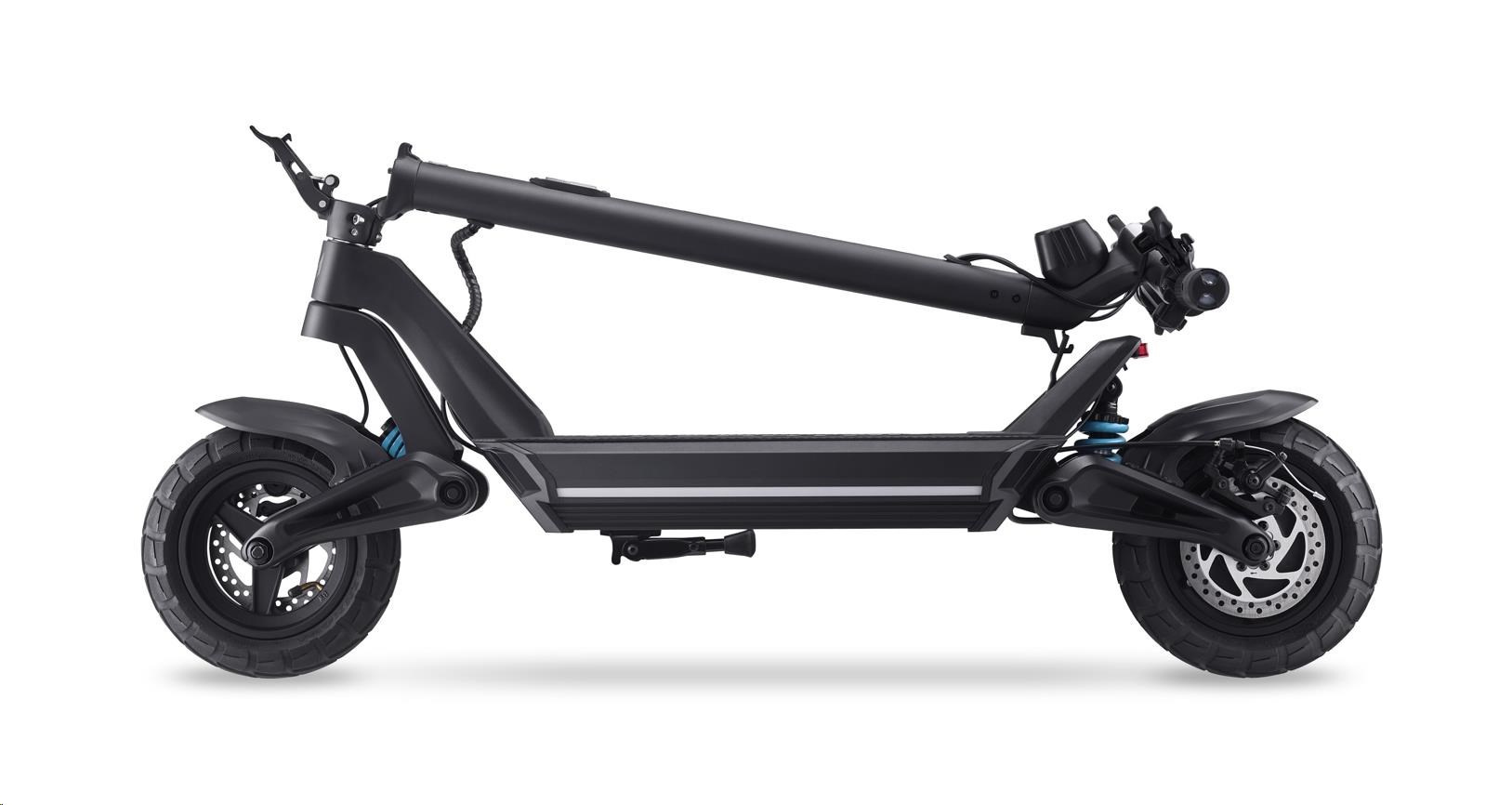 Projíždí jakýmkoli terénem díky terénním pneumatikám o rozměrech 10” x 3”, které jsou navrženy pro přilnavost, rovnováhu a kontrolu. Ať už se jedná o městské ulice nebo drsné stezky, přední vidlice a zadní odpružení tlumí každý náraz a otřes a poskytují jízdu, která je plynulá, ale zároveň výkonná.