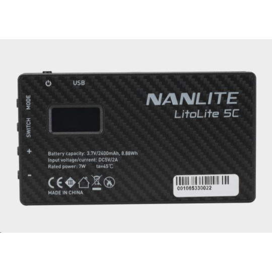 LitoLite 5C je kompaktní LED světelný panel s vestavěnou Li-Ion baterií, nabíjením přes USB-C, úžasným jasem, nastavitelnou teplotou barev od 2700K do 7500K s posunem barev od zelené do purpurové, 360° ovládáním odstínu se 100 úrovněmi nastavení sytosti barev a 15ti předprogramovanými, nastavitelnými speciálními světelnými efekty.