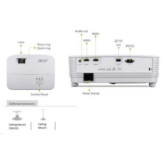 ACER Projektor X1526, DLP 3D, 1080p (1920x1080) FHD, 4000 ANSI, 13 000:1, HDMI, repro 1x3W, 2.4Kg, LumiSense, ColorBoost