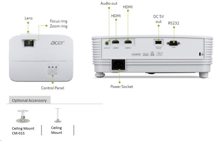 ACER Projektor X1526, DLP 3D, 1080p (1920x1080) FHD, 4000 ANSI, 13 000:1, HDMI, repro 1x3W, 2.4Kg, LumiSense, ColorBoost