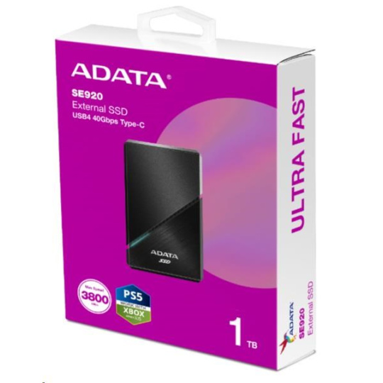 ADATA Externí SSD 1TB SE920, USB 4 Type-C, R:3800/W:3700MB/s, černá