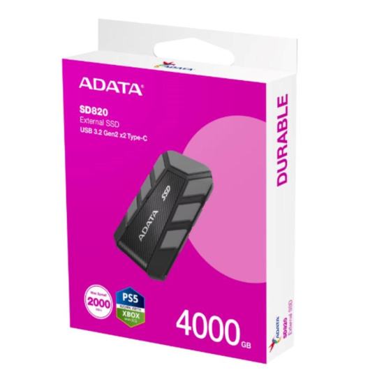 ADATA External SSD 4TB SD820, USB 3.2 Gen 2x2, Černá