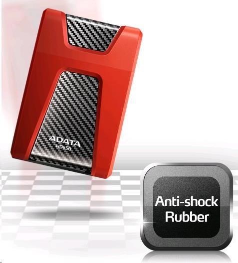 ADATA Externí HDD 1TB USB 3.1 DashDrive Durable HD650, červený (gumový, nárazu odolný)