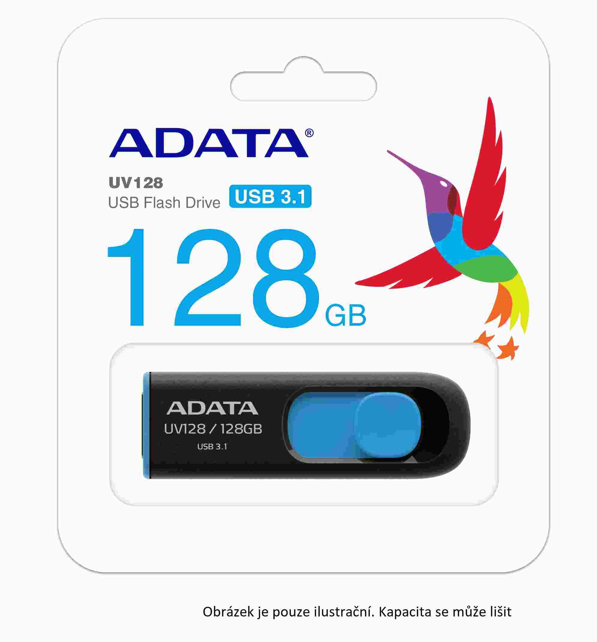 ADATA Flash Disk 32GB UV128, USB 3.1 Dash Drive (R:40/W:25 MB/s) černá/modrá