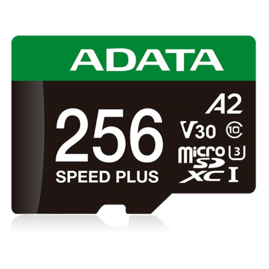 ADATA MicroSDXC karta 256GB Speed Plus, U3, C10, A2, V30 (R:180/W:160 MB/s) + SD adaptér