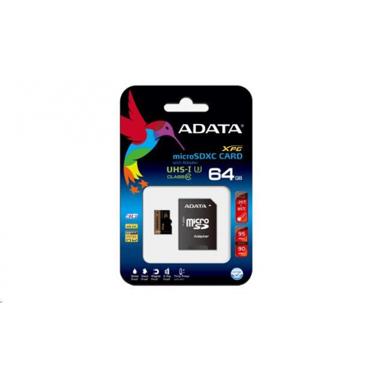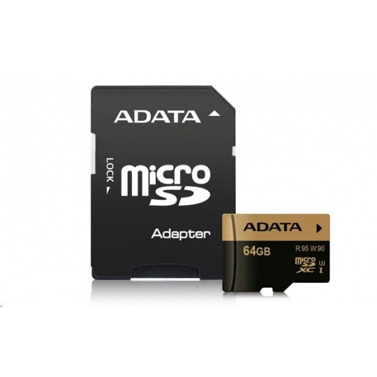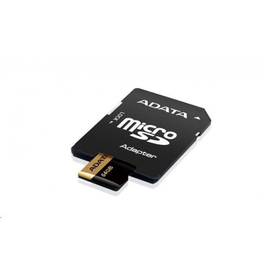 ADATA MicroSDXC karta 64GB Premier Pro UHS-I V30S (R:100/W:80 MB/s) + SD adaptér