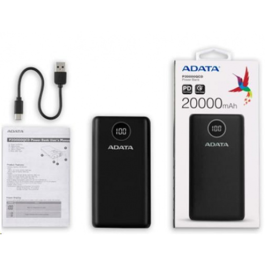 Zkraťte si čekání s powerbankou ADATA P20000QCD! S modelem P20000QCD nabijte svá zařízení coby dup! Tato powerbanka je vybavena velkou baterií 20 000 mAh, má kompaktní formát a podporuje standardy Qualcomm QC 3.0 a USB Power Delivery 3.0.