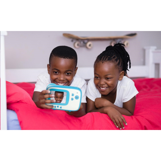 Realikids Instant Cam je jak digitální fotoaparát, který pořizuje fotografie a videa, tak okamžitý fotoaparát, který tiskne černobílé fotografie ve formátu 5,7 × 10 cm. Už žádný inkoust s tiskem na termální papír – stačí jedna role termopapíru! Je to velmi jednoduché a cenově výhodné. Má dobíjecí lithiovou baterii a 2,4" obrazovku, takže si můžete zarámovat a prohlížet fotografie/videa uložená na micro SD kartě (není součástí dodávky).