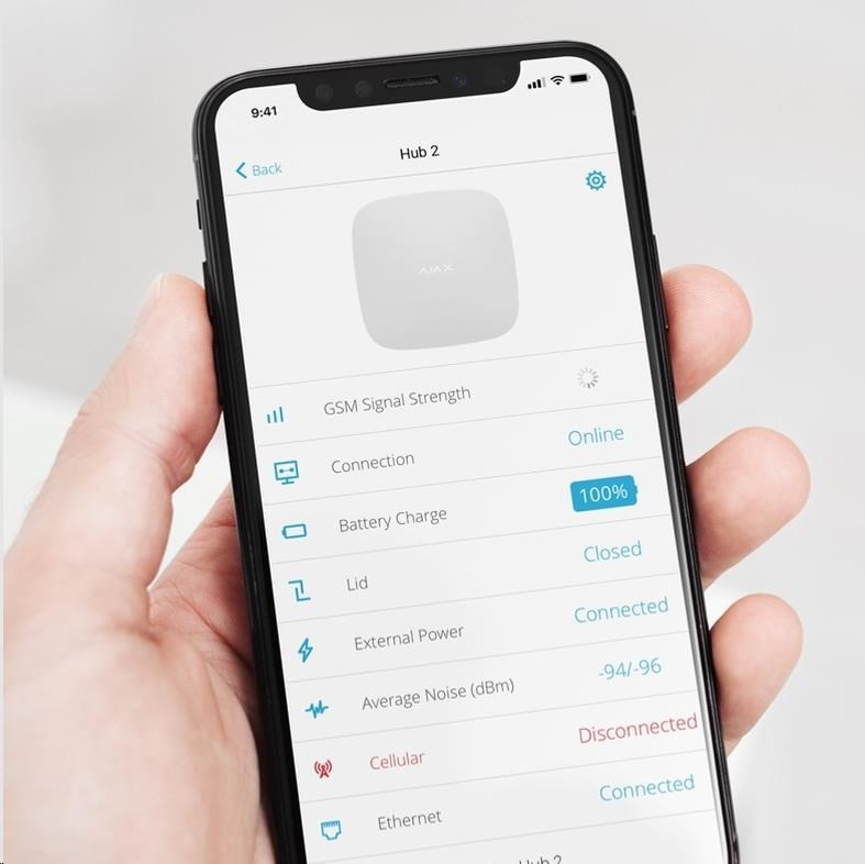 S Hubem 2 LTE (4G) se neprodleně dozvíte, že má detektor poruchu, že ho někdo odstranil, že je poškozen, nebo že je jeho kryt otevřen. Dokonce i v případě výpadku elektrické energie pokračuje Hub v provozu, napájen ze záložní baterie.