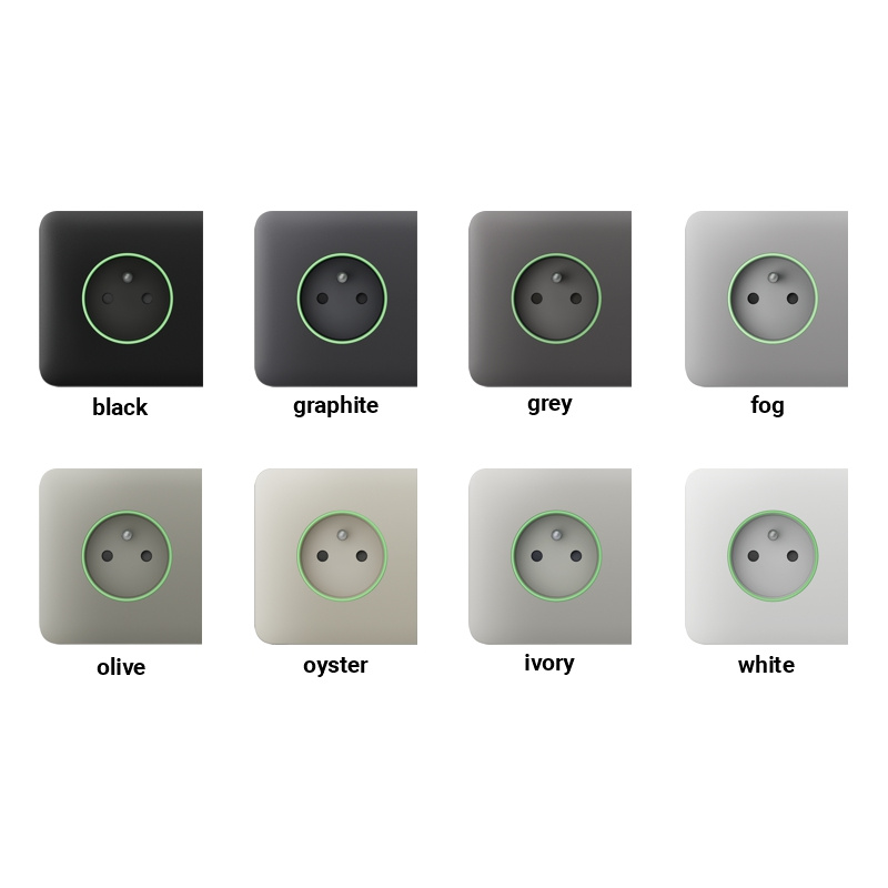 Zásuvky lze používat samostatně nebo je kombinovat s chytrými vypínači LightSwitch a instalovat do rámečku. Přístroje mají stejný design rámečku a barevné odstíny.