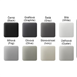 Kombinovaný vypínač se skládá ze 2, 3, 4 nebo 5 relé, dotykových tlačítek a rámečku s odpovídajícím počtem otvorů. Místo vypínače lze použít i inteligentní zásuvku Ajax
