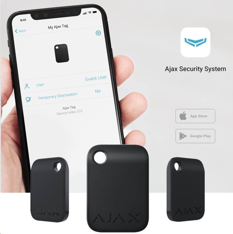 Ajax Tag je šifrovaný bezkontaktní tag (přívěšek) pro přístup k ovládání stavu zabezpečovacího systému Ajax.