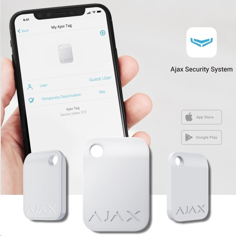 Ajax Tag je šifrovaný bezkontaktní tag (přívěšek) pro přístup k ovládání stavu zabezpečovacího systému Ajax.