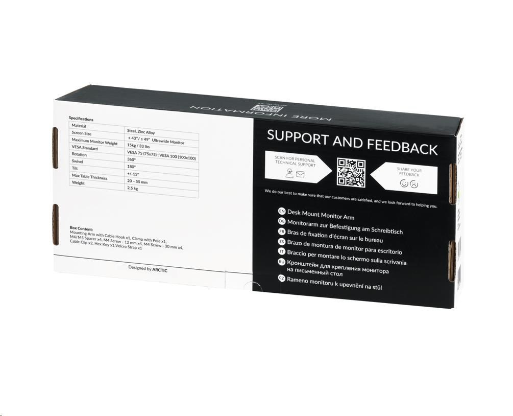 ARCTIC držák na monitor X1, ocel, matná černá