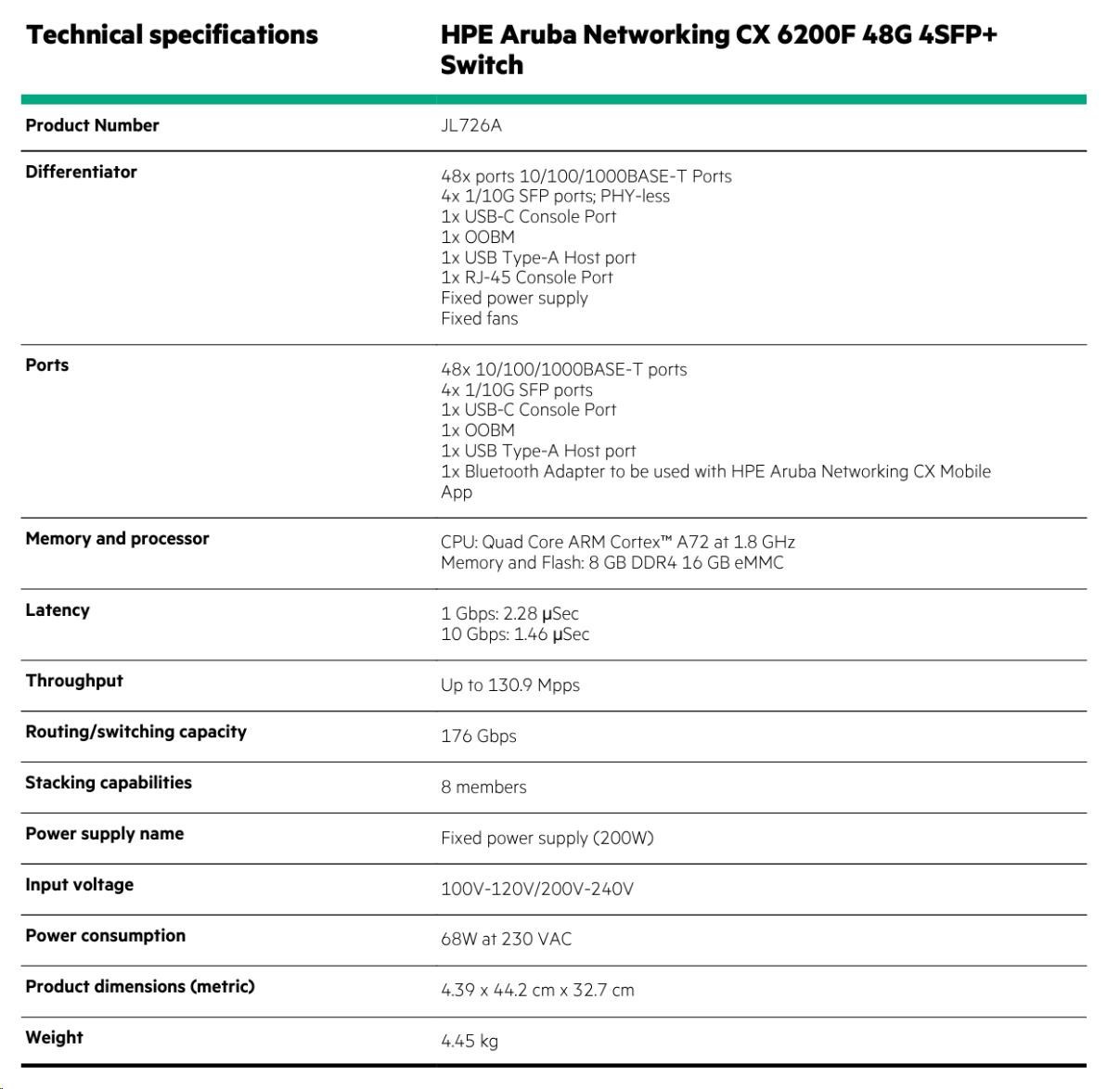 | HPE Aruba Networking CX 6200F 48G 4SFP+ Switch (JL726A) | ||