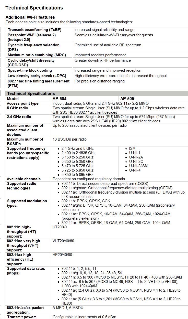 Link to the manufacturer's website: https://www.arubanetworks.com/assets/ds/DS_AP500Series.pdf