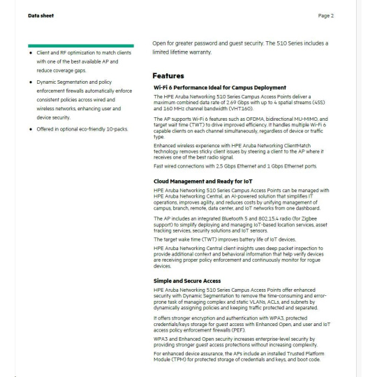 Aruba AP-515 (RW) Dual Radio 4x4:4 + 2x2:2 802.11ax Internal Antennas Unified Campus AP RENEW Q9H62A Q9H62AR.... více