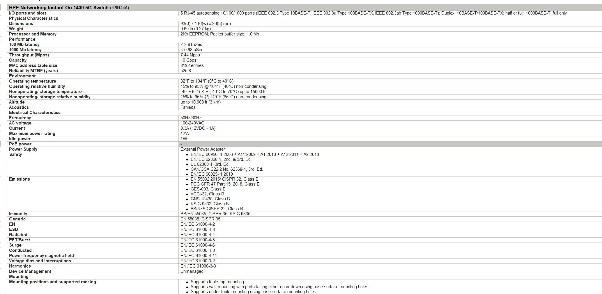 | Aruba Instant On 1430 5G Switch (R8R44A) | |