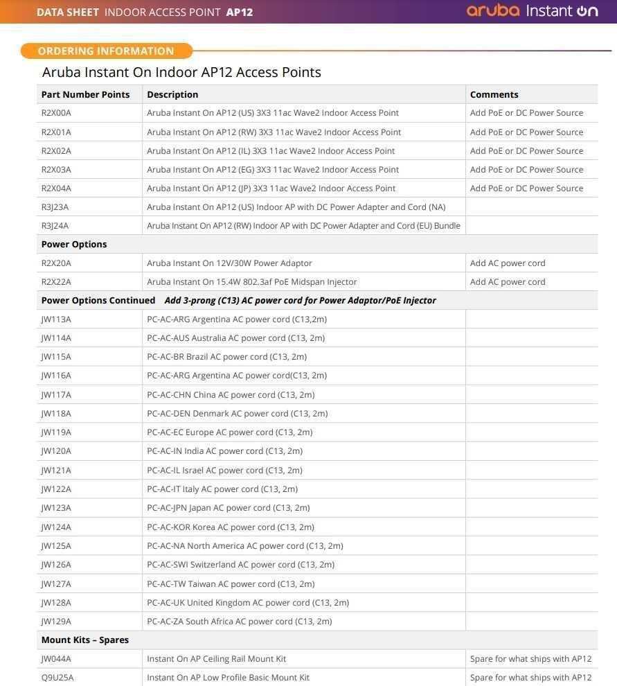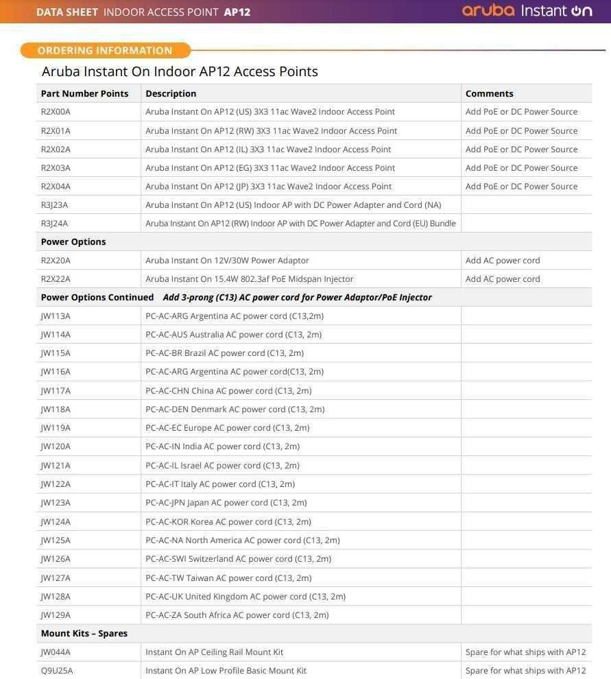 1 x Aruba Instant On AP12 Quick Start guide