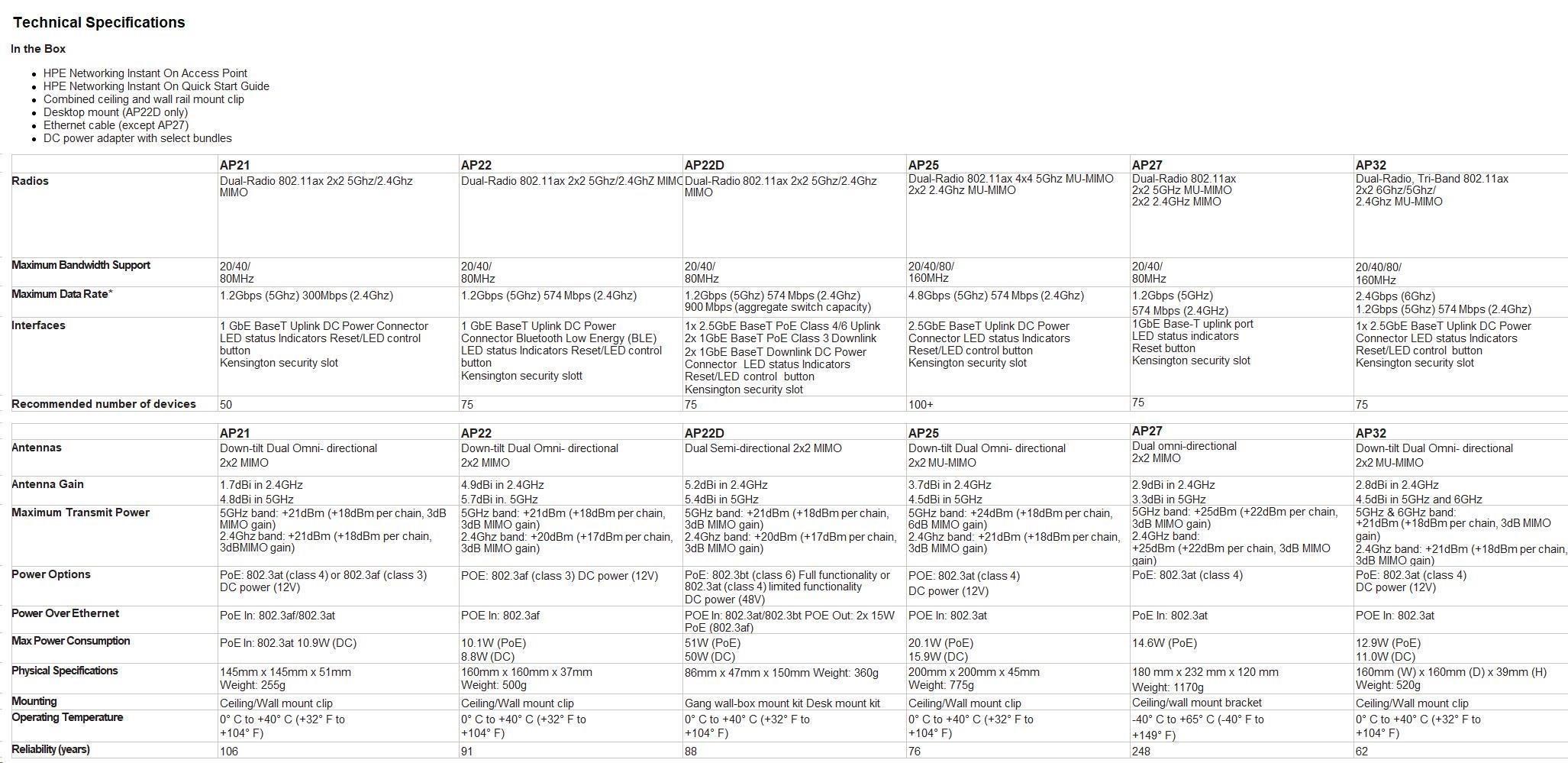 • Aruba Instant On 2-year* warranty in­cludes 24X7 phone support for the first 90 days and chat support for the entire warranty period. Community support is available for the life of the product. Foundation Care provides extended support for APs. The SKUs are HK1Y0E (3 years) and H30GZE (5 years).