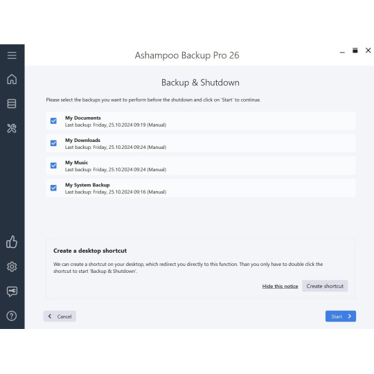 Ashampoo Backup Pro 26 vás zbaví strachu z virů, ransomwaru a hardwarových chyb! Vyzkoušejte snadno použitelné dobře navržené, ale výkonné zálohovací řešení. Nový Ashampoo Backup Pro vám nabízí všechny možné možnosti ukládání: Zálohujte jednotlivé soubory nebo celé diskové oddíly na místní disky nebo k poskytovatelům online úložišť. Zálohovací software už nemůže být jednodušší. Stačí připojit úložné zařízení a můžete začít! Program je navíc nenáročný na zdroje, nepřekáží vám a všechnu těžkou práci vykonává na pozadí. Obnovení záloh je velmi snadné! Ashampoo Backup Pro je dokonce dodáván se spouštěcím záchranným systémem pro obnovení systému v případě jeho většího selhání!