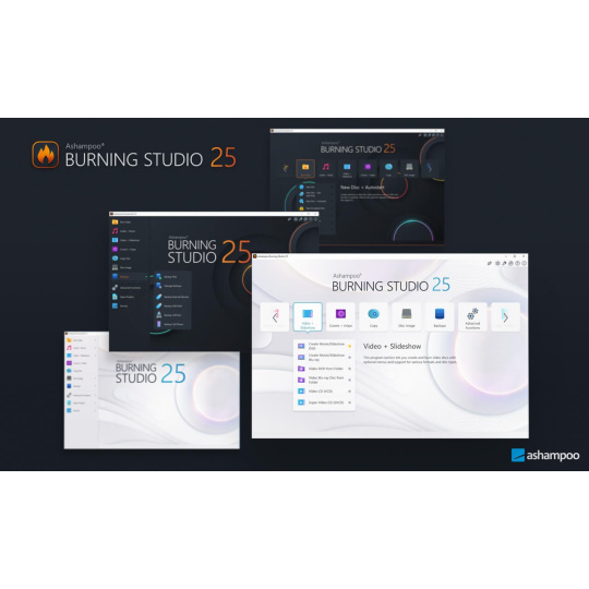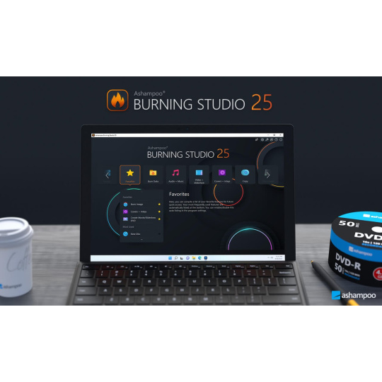 Nové Ashampoo Burning Studio 26 představuje nejpohodlnější způsob bezpečného vypalování dat a kopírování disků CD, DVD a Blu-ray bez námahy. Ripujte audio disky a zálohujte svou hudbu nebo vytvářejte vlastní hudební kompilace s vhodnými obaly! Další špičkové multimediální funkce vám také umožní vytvářet vlastní filmy a prezentace, a dokonce je umožní vypálit na disk spolu s šikovnými animovanými nabídkami. Rozlučte se se ztrátou dat, okamžitě zálohujte své soubory a vypalujte důležitá data na jakýkoli typ disku pomocí výkonné komprese a ochrany heslem. A nové komfortní funkce pro audioknihy, audioprojekce a podcasty jsou zárukou kvalitní zábavy!