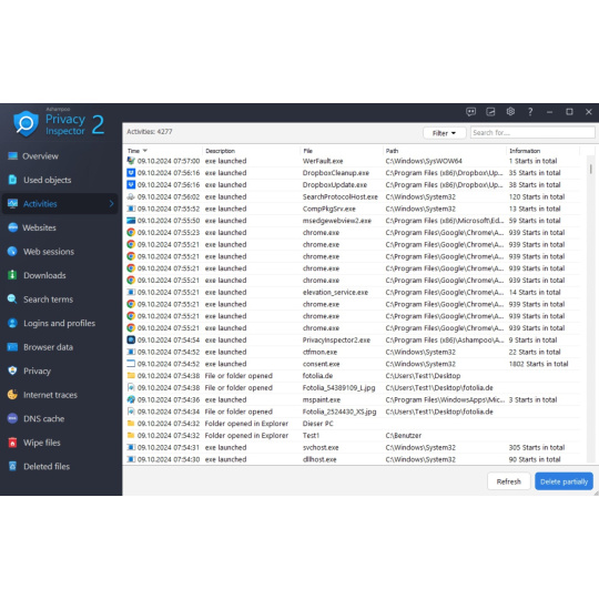 You may be using adblockers, VPNs, and other means to browse the web anonymously, but you'll still leave telltale traces about search terms, form inputs, and visited websites on your PC! Use Ashampoo Privacy Inspector to review not just your traces but those of anyone else using your computer. Apply filters to focus on what's relevant to you, sift through data from Chrome, Edge, and Firefox with ease, and delete anything you don't want recorded!