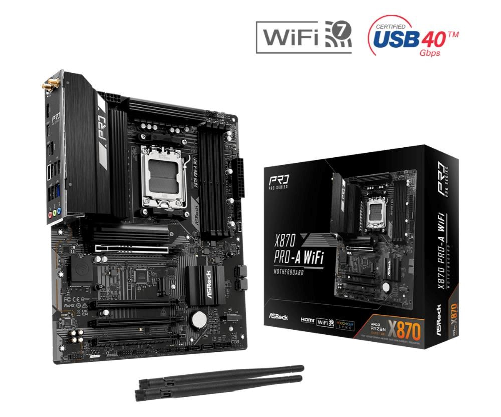 ASRock MB Sc AM5 X870 PRO-A WIFI, AMD X870, 4xDDR5, 1xHDMI, 2xUSB4, WI-FI