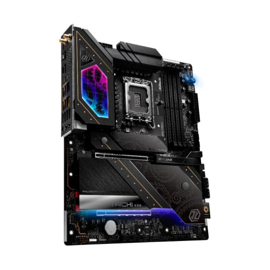 Taichi series flagship motherboard features top-tier hardware spec, robust power design, Thunderbolt™ 4 Type-C, and DIY-friendly functionality. It's built for high-end gamers, offering luxury aesthetics and powerful performance.