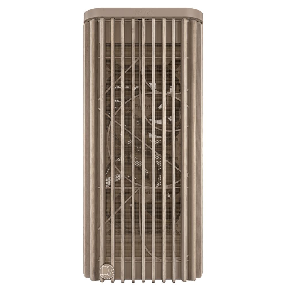 ProArt PA401 Wood Edition Beige má dřevěný přední panel, který vytváří výrazný a elegantní vzhled a zároveň podporuje udržitelnost. Použité dřevo je certifikováno Forest Stewardship Council (FSC) a je dokončeno šestimístným procesem úpravy. Skříň také nabízí optimální vestavěné chlazení se dvěma 160mm předními ventilátory a jedním 120mm zadním ventilátorem, spolu s integrovaným hubem pro ventilátory, který umožňuje optimální proudění vzduchu.