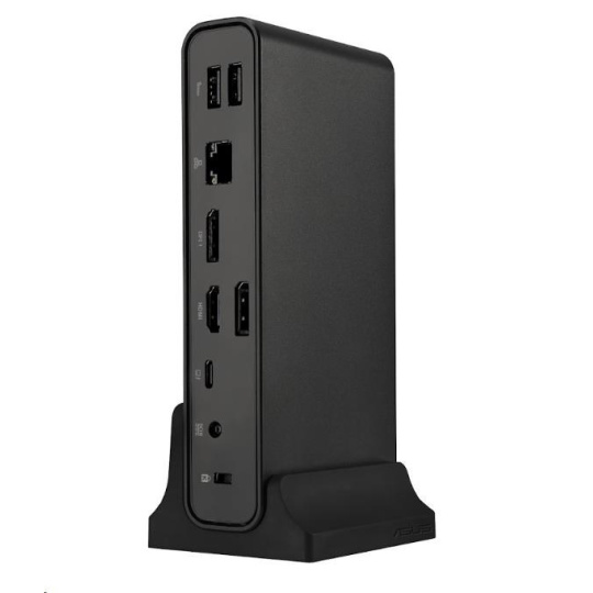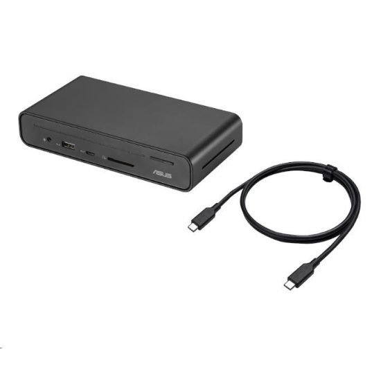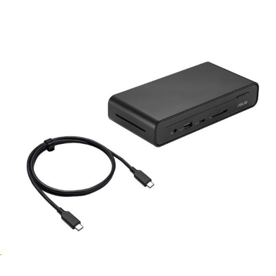 ASUS Triple Display USB-C Dock je elegantní a kompaktní zařízení, které zjednodušuje připojení notebooku. Napájejte notebook jediným kabelem, připojte se k síti a periferním zařízením a pracujte na více úlohách až se čtyřmi monitory - včetně monitoru notebooku a tří externích monitorů. Má také integrovanou čtečku karet SD pro nejrůznější pracovní scénáře. Jednoduše řečeno, dokovací stanice ASUS Triple Display USB-C Dock udrží váš stůl čistý, uklizený a organizovaný a zároveň vás v mžiku připraví na práci.