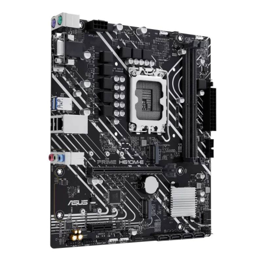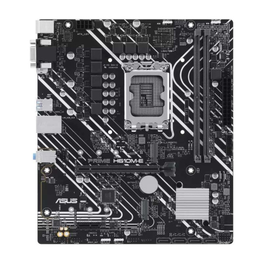 ASUS Prime H610M-E-CSM, an Intel® H610 (LGA 1700) mATX motherboard with DDR5, PCIe 4.0, dual M.2 slots, Realtek 1 Gb Ethernet, DisplayPort, HDMI™, VGA , USB 3.2 Gen 1 ports, SATA 6 Gbps, COM header, Aura Sync