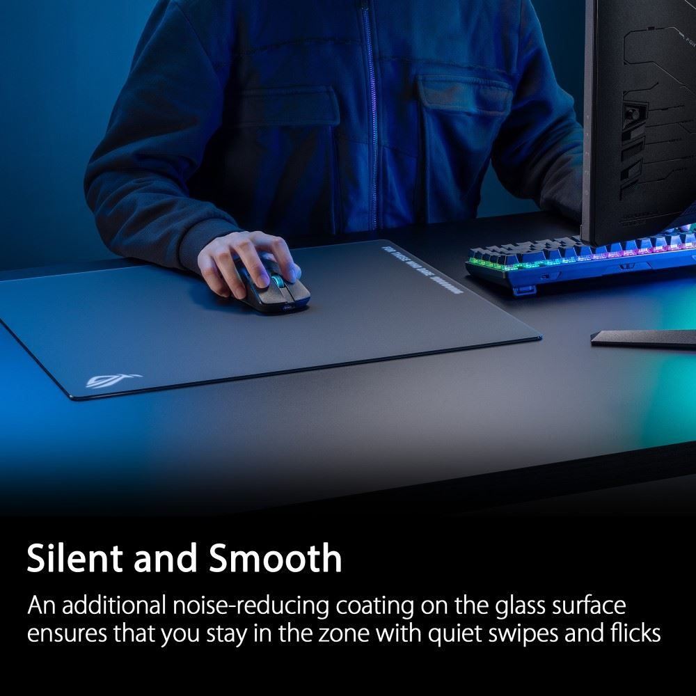 ROG Moonstone Ace L je prémiová podložka pod myš vyrobená z tvrzeného skla odolného proti nárazu a poškrábání pro výjimečnou odolnost. Jeho speciálně upravený povrch poskytuje bezkonkurenční úroveň přesnosti, stejně jako snadné přejetí a sledování. Díky tak rychlým a čistým pohybům vaši protivníci nebudou vědět, co je zasáhlo.