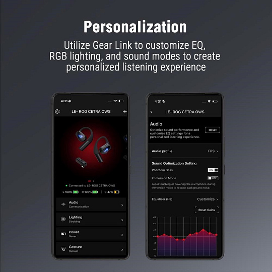 - Integrované audio režimy: Režim Phantom Bass posiluje vnímání nízkých frekvencí a režim Immersion jemně snižuje hluk v pozadí pro soustředěnější a pohlcující zážitek z poslechu
