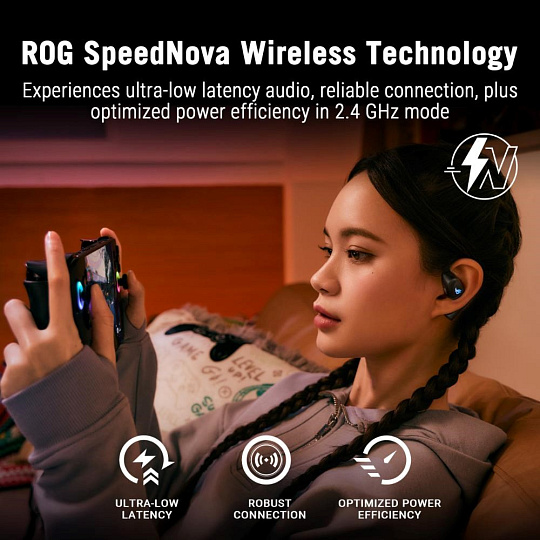 - Bezdrátové připojení ve dvou režimech: Bluetooth a režim ROG SpeedNova 2,4 GHz s ultra nízkou latencí, plus jednosměrné průchozí nabíjení přes USB-C