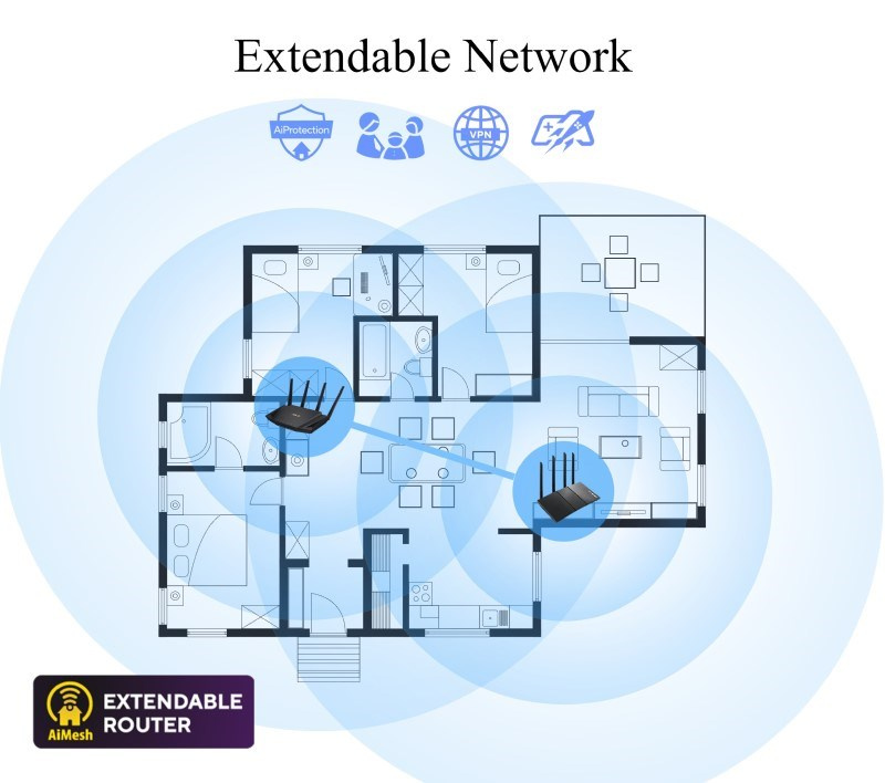 TUF Gaming AX3000 V2 Dual Band WiFi 6 Gaming Router with Mobile Game Mode, 3 steps port forwarding, 2.5Gbps port, AiMesh for mesh WiFi, AiProtection Pro network security Ultrafast WiFi 6 - Enjoy speeds up to 3000 Mbps and 4X network efficiency with OFDMA and 160 MHz channels. True Multi-Gigabit wired speeds - Aggregated 2 Gigabit LAN connections, wired 2.5Gbps port and WiFi 6. Easy Port Forwarding in 3 Steps - Open NAT makes port forwarding simple, eliminating frustrating and complicated manual configuration. ASUS AiMesh Support – Create a flexible, seamless whole-home mesh network with AiMesh-compatible routers. Tested Durability and Stable Operation - TUF Gaming AX3000 V2 is built to be durable and undergoes verified testing to ensure reliable, stable operation. 802.11a : up to 54 Mbps 802.11b : up to 11 Mbps 802.11g : up to 54 Mbps WiFi 5 (802.11ac) (1024QAM) : up to 867 Mbps WiFi 6 (802.11ax) (2.4GHz) : up to 574 Mbps WiFi 6 (802.11ax) (5GHz) : up to 2402 Mbps 2.4GHz 2x2 5GHz 2x2 RJ45 for 2.5 Gigabits BaseT for WAN x 1, RJ45 for Gigabits BaseT for LAN x 4, USB 3.2 Gen 1 x 1,.