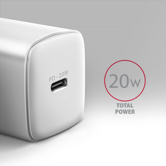 AXAGON ACU-PD20W, nabíječka do sítě 20W, 1x port USB-C, PD3.0/PPS/QC4+/AFC/Apple, bílá