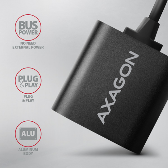 AXAGON ADA-12, USB 2.0 - externí zvuková karta, 48kHz/16-bit stereo, kovová, kabel USB-A 15 cm