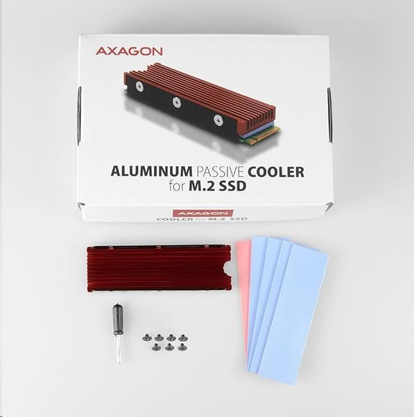 Pasivní hliníkový chladič AXAGON CLR-M2 ALU je ideální pro chlazení výkonných M.2 SSD disků, zejména NVMe. Univerzální heatsink lze použít na M.2 karty o rozměru 22 x 80 mm. Dodávané teplovodivé podložky, umožní montáž chladiče pro všechny jednostranné i oboustranné M.2 SSD disky.