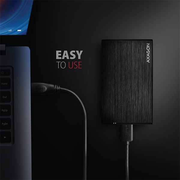 Kompaktní hliníkový externí box AXAGON EE25-XA6 ALINEbox s USB 3.2 Gen 1 (USB 3.0) rozhraním určený pro 2.5" SATA pevné disky nebo SSD.