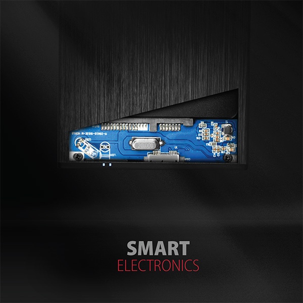 SATA 6G rozhraní s podporou UASP dovolí užívat si rychlost moderních SSD disků. Podpora funkce TRIM pro omezení pozvolné degradace výkonu SSD v čase. Čtení S.M.A.R.T. informací monitorujících kondici externího disku. Podpora uspávání připojeného disku i boxu.