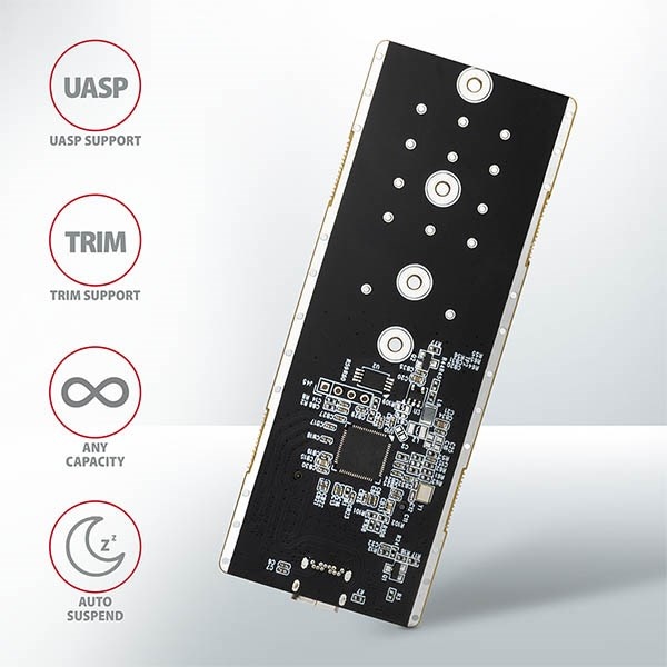 SuperSpeed USB 10 Gbit/s rozhraní dovolí užívat si rychlost moderních M.2 SSD disků. Díky rychlému USB 3.2 Gen 2 rozhraní je přenosová rychlost až 10Gb/s.