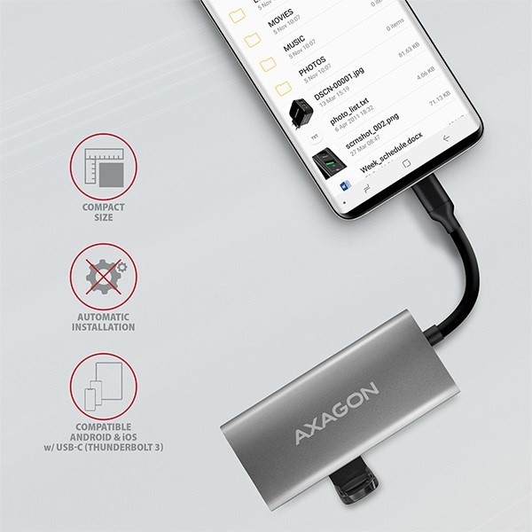Lze tak využít Vaše stávající USB periferie bez nutnosti pořizování nových. Díky funkcím Plug and Play a Hot Plug je samotné zapojení hubu velmi jednoduché bez složité instalace, a také lze jednoduše připojovat a odpojovat periferie za běhu počítače. Rozbočovač se nezalekne ani připojení k telefonům s USB-C konektorem. K telefonu tak připojíte například flash disk, klávesnici nebo myš.