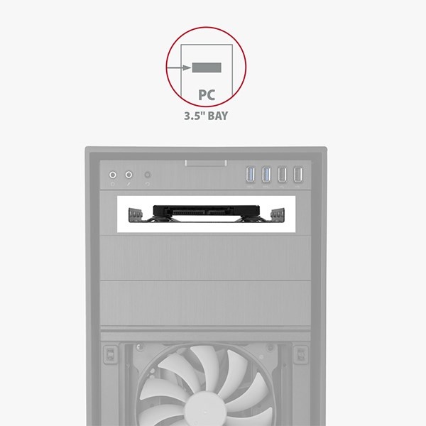 - Rozměry rámečku a montážní otvory odpovídají standardní 3.5" pozici PC skříně.