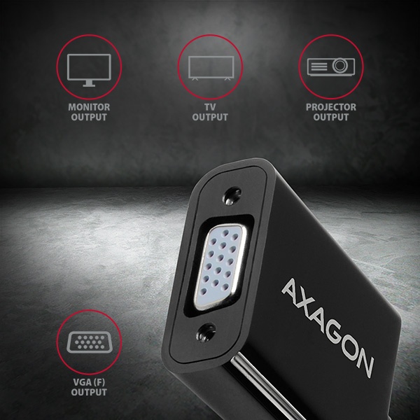 HDMI -> VGA aktivní adaptér AXAGON RVH-VGN pro připojení staršího VGA monitoru/TV/projektoru k počítači nebo jinému zařízení s výstupem HDMI. Redukci lze použít i se set-top boxy nebo herními konzolemi Xbox a PlayStation.