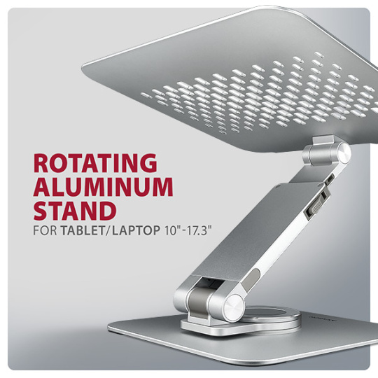AXAGON STND-LR, hliníkový stojan pro notebooky 10" - 17" s nastavitelnou výškou, úhlem a 360° rotací